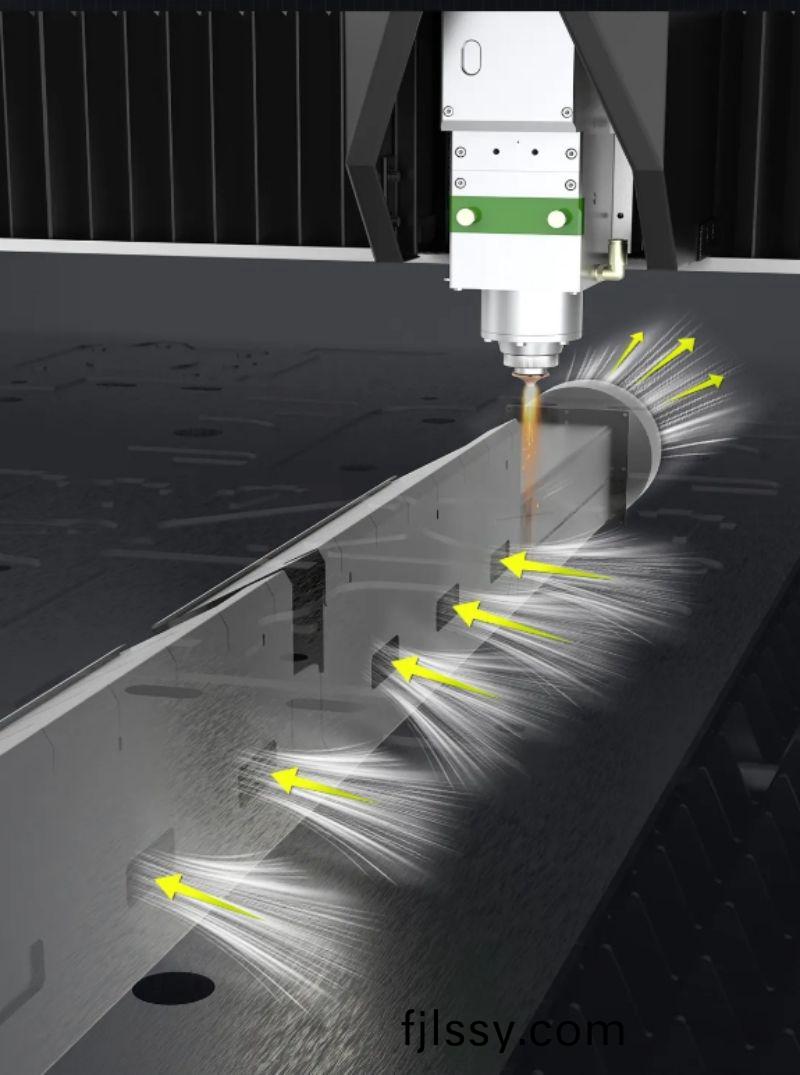 根據切割區域自動開郃抽風集塵口,除塵更(geng)精(jing)準徹底(di)